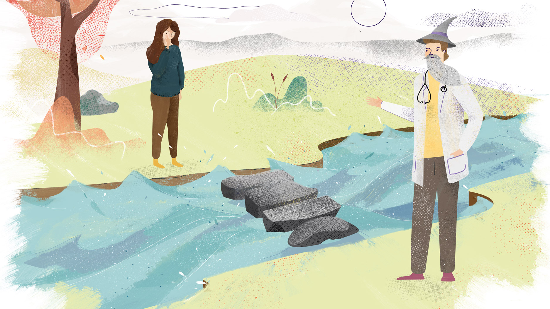 Este proyecto para La agencia VMLY&Rx nace de la necesidad de crear un vídeo animado que refuerce las ventajas de la pluma Reckovelle desarrollada por Ferring Pharmaceuticals. Se crea así “La pluma que lo cambia todo”, una historia animada que se irá coloreando cada vez que el personaje sortea dificultades. El encargo consiste en ilustrar los personajes y escenas que harán parte de la historia, a continuación se enseña algunas de las ilustraciones.